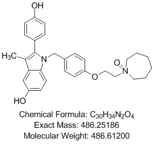CAS No:1174289-22-5||Chemical Formula:C30H34N2O4||1-[[4-[2-(Hexahydro-1-oxido-1H-azepin-1-yl)ethoxy]phenyl]methyl]-2-(4-hydroxyphenyl)-3-methyl-1H-indol-5-ol