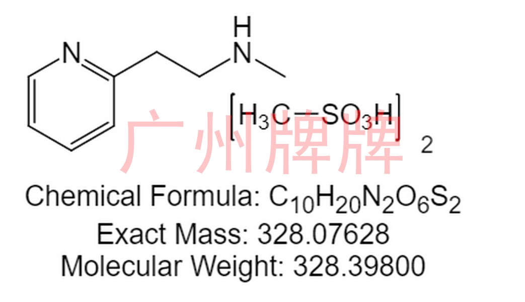 CAS NO:54856-23-4|Chemical Formula: C10H20N2O6S2|Molecular Weight: 328.39800|Exact Mass: 328.07628|N-Methyl-2-(pyridin-2-yl)ethanamine bis(methanesulfonate).