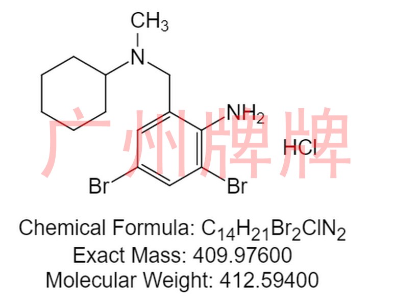 CAS No:611-75-6||Chemical Formula:C14H21Br2ClN2||Molecular Weight:412.59400||Exact Mass:409.97600||2,4-Dibromo-6-[[cyclohexyl(methyl)amino]methyl]aniline