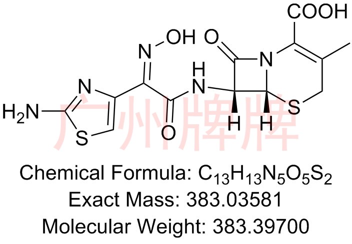 CAS No:N/A||Chemical Formula:C14H13N5O5S2 ||Molecular Weight:395.40800||Exact Mass:395.03581||(6R,7R)-7-((Z)-2-(2-aminothiazol-4-yl)-2-(hydroxyimino)acetamido)-…