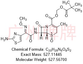 CAS No:N/A||Chemical Formula:C20H25N5O8S2||Molecular Weight:527.56700||Exact Mass:527.11445||(pivaloyloxy)methyl (6R,7R)-7-((E)-2-(2-aminothiazol-4-yl)-2-(metho…
