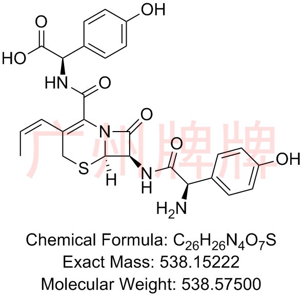 CAS No:N/A||Chemical Formula:C26H26N4O7S||Molecular Weight:538.57500||Exact Mass:538.15222||(R)-2-((6R,7R)-7-((R)-2-amino-2-(4-hydroxyphenyl)acetamido)-8-oxo-3-…