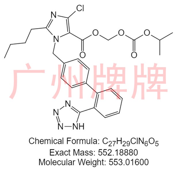 CAS NO:947331-05-7|Chemical Formula: C27H29ClN6O5|Molecular Weight: 553.01600|Exact Mass: 552.18880|propan-2-yloxycarbonyloxymethyl 2-butyl-5-chloro-3-[[4-[2-(2H-tetrazol-5-yl)phenyl]phenyl]methyl]imidazole-4-carboxylate