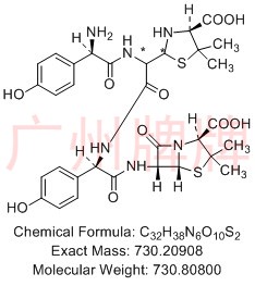 CAS NO: 73590-06-4 Chemical Formula: C32H38N6O10S2Exact Mass: 730.2091Molecular Weight: 730.8080|(2S,5R,6R)-6-((2R)-2-(2-((R)-2-amino-2-(4-hydroxyphenyl)acet…