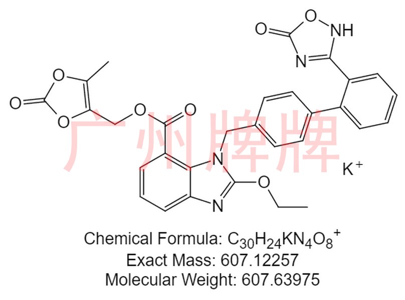 CAS NO:863031-24-7|Chemical Formula: C30H24KN4O8+|Molecular Weight: 607.63975|Exact Mass: 607.12257|Potassium(5-methyl-2-oxo-1,3-dioxol-4-yl)methyl 2-ethoxy-3-(……