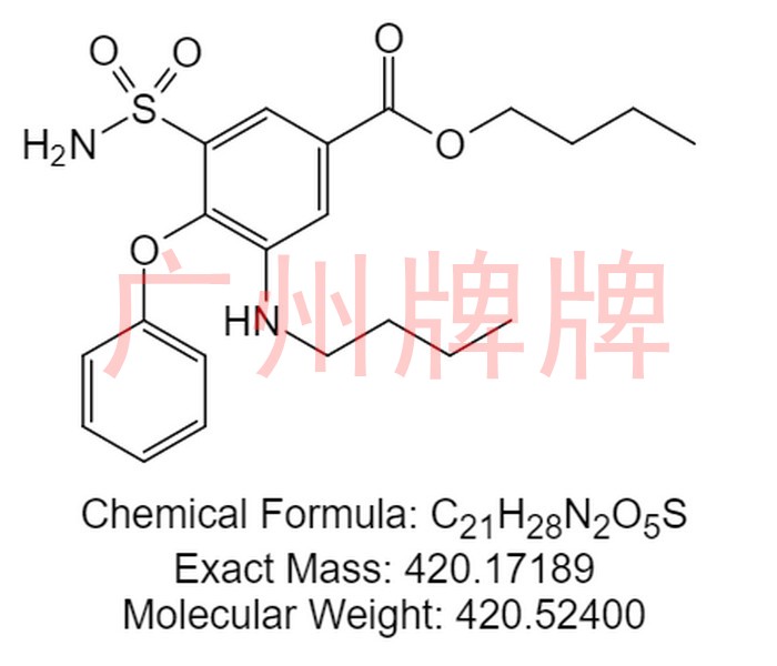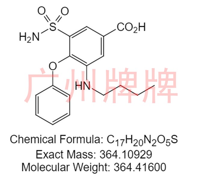 CAS NO:28395-03-1|Chemical Formula: C17H20N2O5S|Molecular Weight: 364.41600|Exact Mass: 364.10929|3-(Butylamino)-4-phenoxy-5-sulfamoylbenzoic acid.