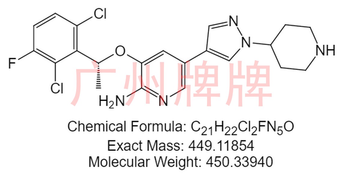 CAS NO:877399-52-5|Chemical Formula: C21H22Cl2FN5O|Molecular Weight: 450.33940|Exact Mass: 449.11854|3-{[(1R)-1-(2,6-dichloro-3-fluorophenyl)ethyl]oxy}-5-[1-(he……