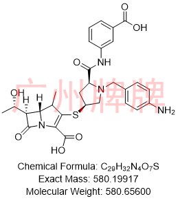 CAS No:402955-38-8||Chemical Formula:C44H50N6O14S2||(4R,5S,6S)-3-[[(3S,5S)-5-[[[3-[[(1R,2S)-2-Carboxy-2-[(2S,3R)-5-carboxy-4-[[(3S,5S)-5-[[(3-carboxyphenyl)amino]carbonyl]-3-pyrrolidinyl]thio]-3,4-dihydro-3-methyl-2H-pyrrol-2-yl]-1-methylethoxy]carbonyl]phenyl]amino]carbonyl]-3-pyrrolidinyl]thio]-6-[(1R)-1-hydroxyethyl]-4-methyl-7-oxo-1-azabicyclo[3.2.0]hept-2-ene-2-carboxylic Acid