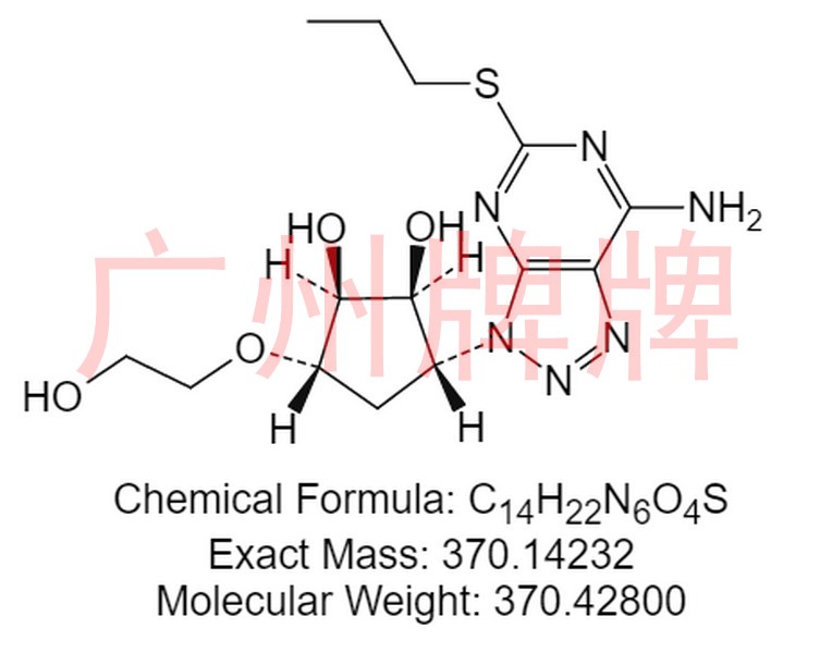 CAS NO:N/A|Chemical Formula: C14H22N6O4S|Molecular Weight: 370.42800|Exact Mass: 370.14232|(1S,2S,3R,5S)-3-[7-amino-5-(propylsulfanyl)-3H-[1,2,3]triazolo[4,5-d]……