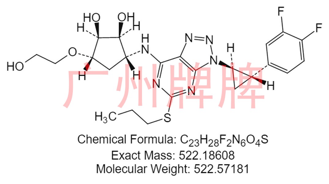 CAS NO:274693-27-5|Chemical Formula: C23H28F2N6O4S|Molecular Weight: 522.57181|Exact Mass: 522.18608|(1S,2S,3R,5S)-3-[7-[[(1R,2S)-2-(3,4-Difluorophenyl)cyclopro……