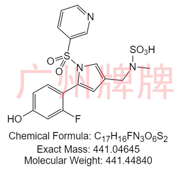 Exact Mass: 441.04645|({1-[dioxo(pyridin-3-yl)-λ6-sulfanyl]-5-(2-fluoro-4-hydroxyphenyl)pyrrol-3-yl}methyl)(methyl)azanesulfonic acid