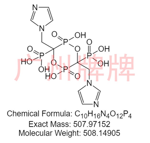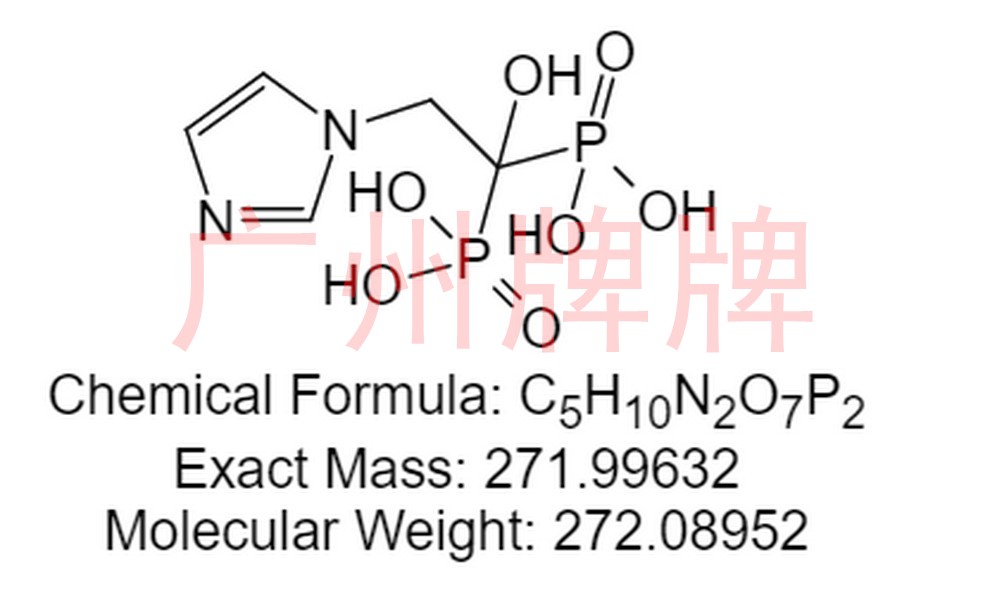 CAS NO:118072-93-8|Chemical Formula: C5H10N2O7P2|Molecular Weight: 272.08952|Exact Mass: 271.99632|[1-hydroxy-2-(imidazol-1-yl)-1-phosphonoethyl]phosphonic acid